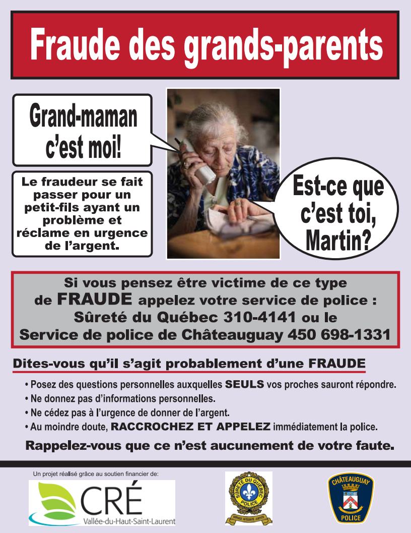 Mise en garde - Fraudes téléphoniques envers les ainés La sûreté du québec aimeraît vous rappeller les bons réflexes à adopter pour prévenir une fraude.Consultez ces quelques images pour en savoir plus. Images supplémentaires Catégorie Communauté Sécurité publique et incendies Sous-titre Quand municipalité rime avec sécurité Jeudi 8 décembre 2022 - 16:44